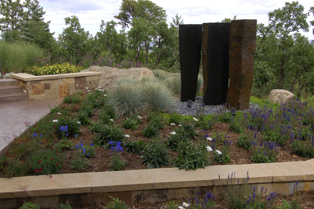 If you are thinking about placing art in your landscape there are several items to consider. First is the size of the sculpture. If too small the art will get lost among the landscape planting. If too large the sculpture will be too dominant and look out of place. Also, consider the materials. Will the weather and elements break down the finish on the art? Does the material go with the style of the landscape? A wood-carved bear may not fit in with formal hedges but would look great among Aspen trees and other Rocky Mountain plants.