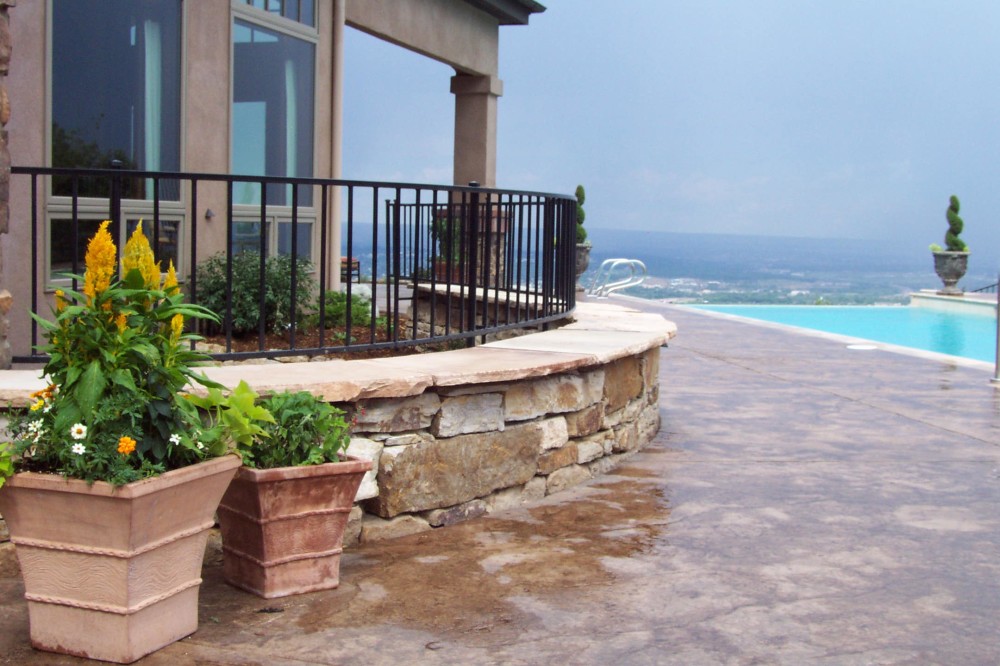Quality materials and construction techniques are critical to creating a patio seating wall that will last a lifetime. Because of the weight of these landscape elements, it is essential to start with a structurally sound foundation in order to avoid settling. Our seating walls are built on leveled compacted road base under a concrete footer with horizontal and vertical rebar. Recessed mortar is used throughout the wall and between the wall and cap. Low voltage outdoor LED landscape lighting can easily be added to a seating wall. Wiring can run inside the seating wall and recessed step or strip lights can be placed under the overhang of the wall cap. This type of lighting provides a subtle illumination of the stone seating wall sides and also the ground beneath for safely walking around the wall in the dark.